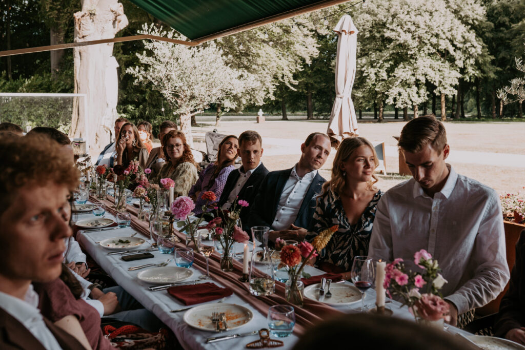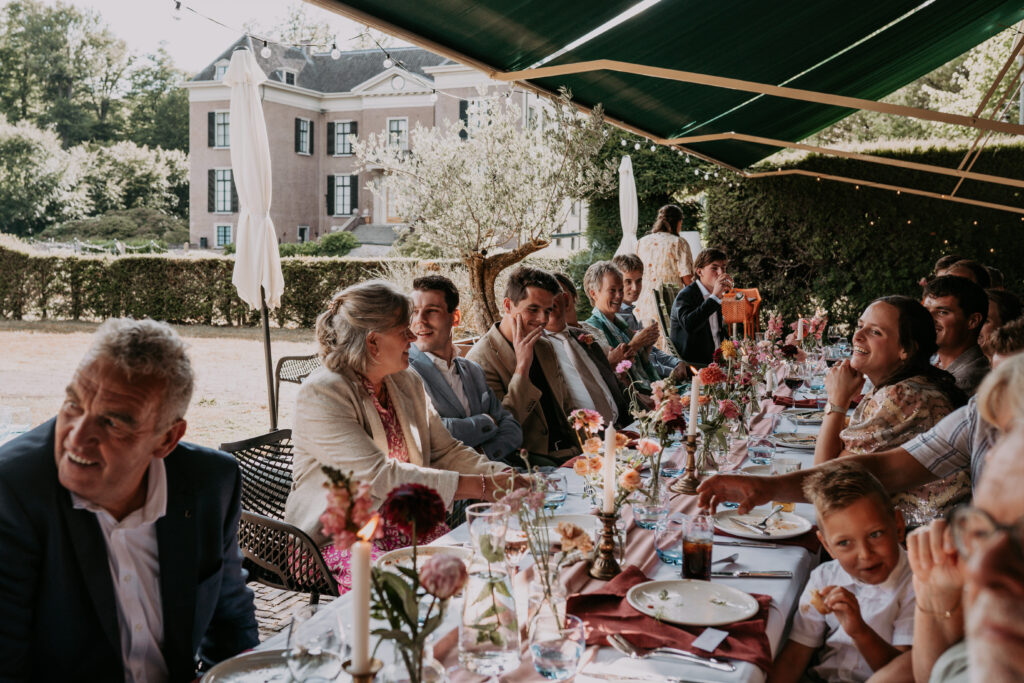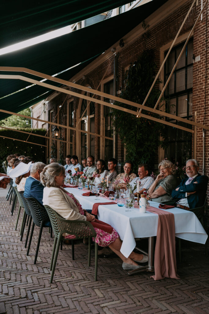 Daarna reden we door naar de locatie waar alles verder plaatsvond. Eerder die week waren ze officieel al getrouwd voor de wet op het gemeentehuis. Een heerlijke, ontspannen dag. Lieve mensen, mooie woorden, gelach, gezelligheid: alles wat je wil op jullie dag!